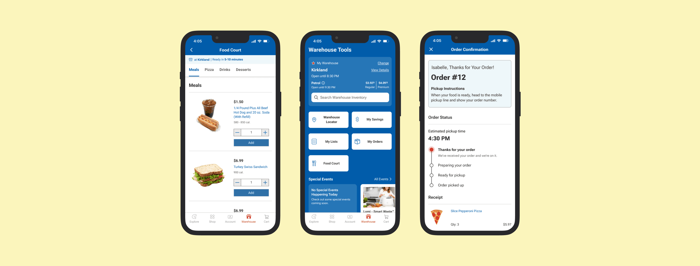 Reimagining Costco's food court experience with a new mobile ordering feature for more convenient and efficient service.